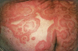 EAS benzeri lezyonlar yapar. Halka şeklinde, kızarık,