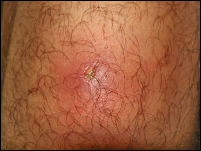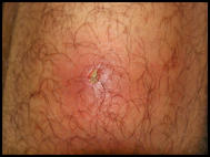 bölgesinde kabarık küçük bir püstül mevcuttur.